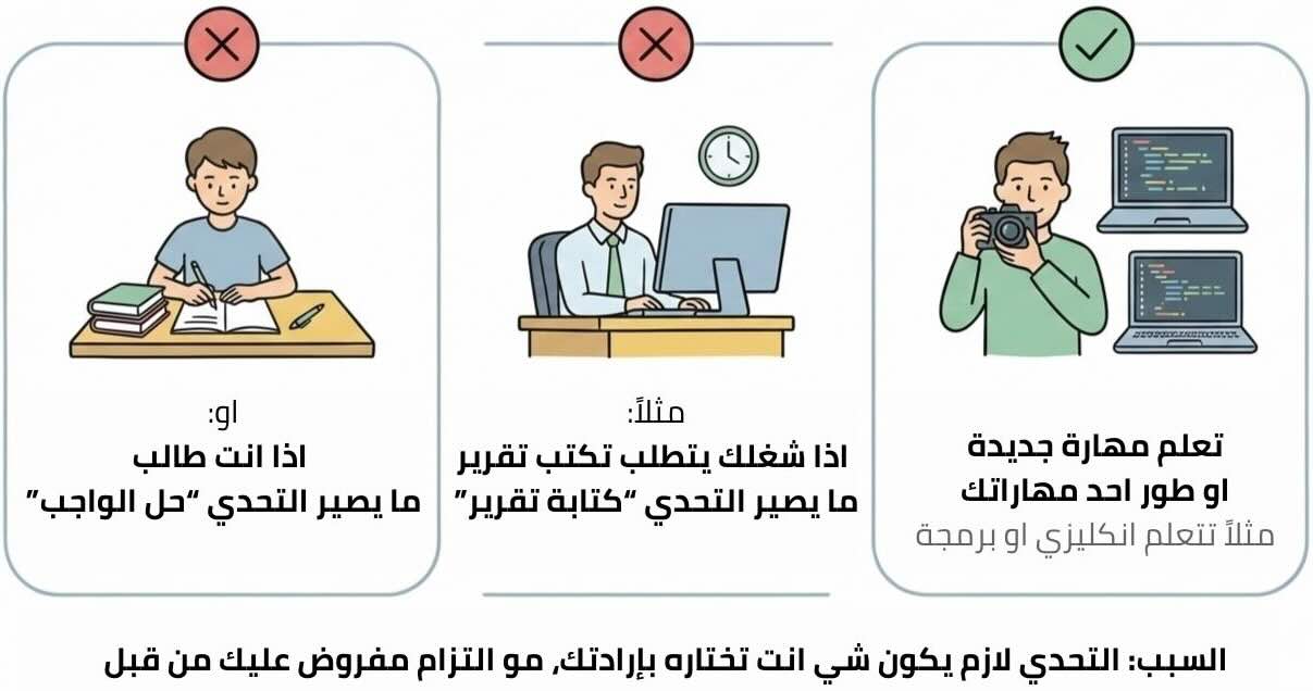 ٢. اختار تحدي خارج المهام الي انت اصلاً ملتزم بيها